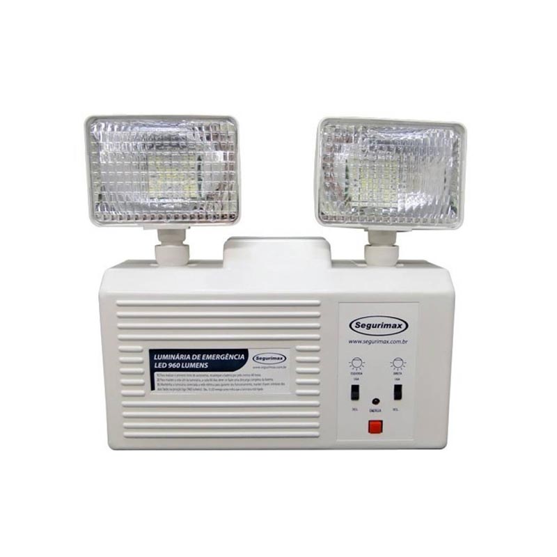 A Luminária de Emergência de LED com 960 Lúmens é Fabricado em plástico ABS e possui dois faróis, cada um com 24 leds de alta potência, lente com ângulo de 60°. Indicado para uso em galpões, hotéis, residências. Atende os requisitos exigidos pelas normas nacionais (NBR 10898) E Possui acendimento individual por farol.
